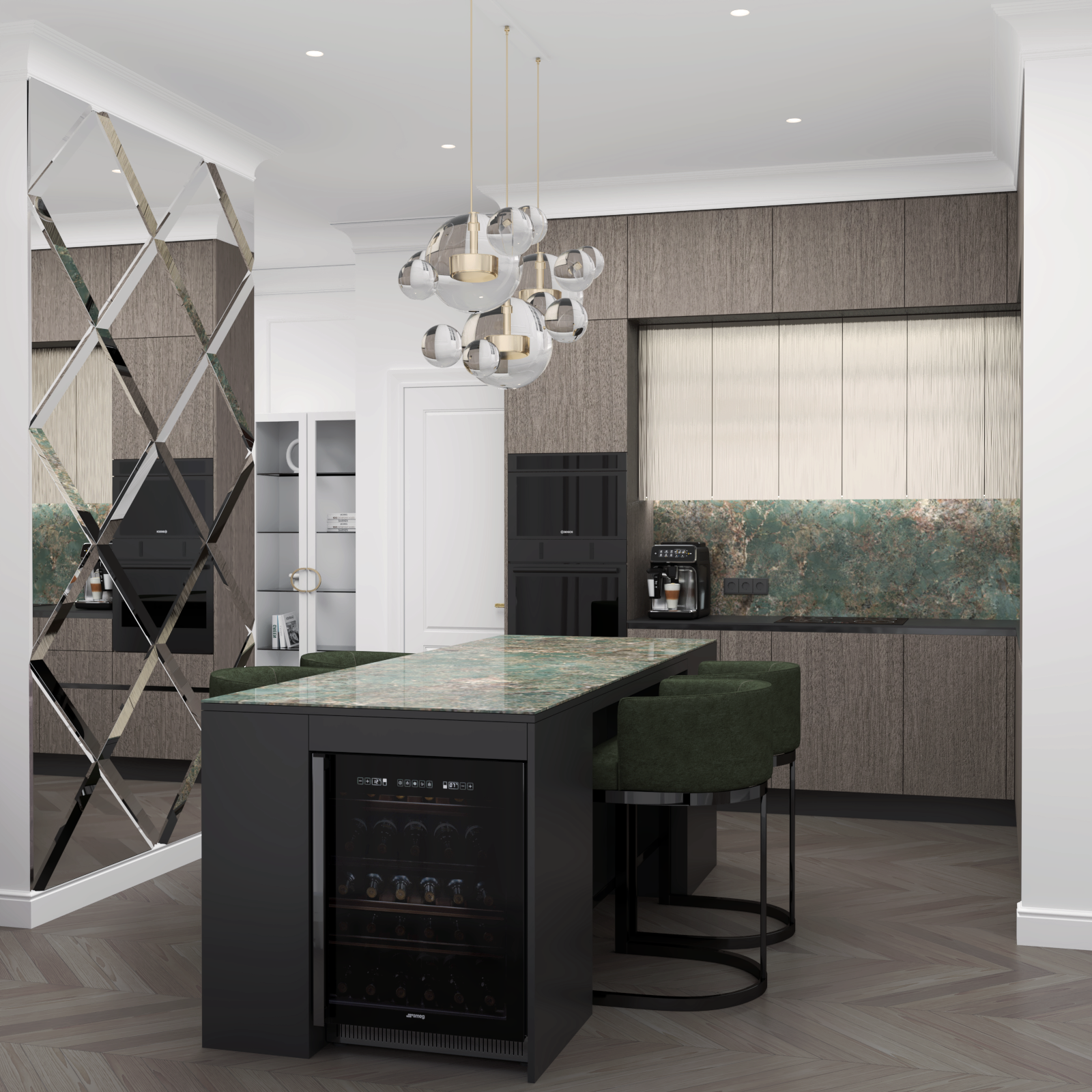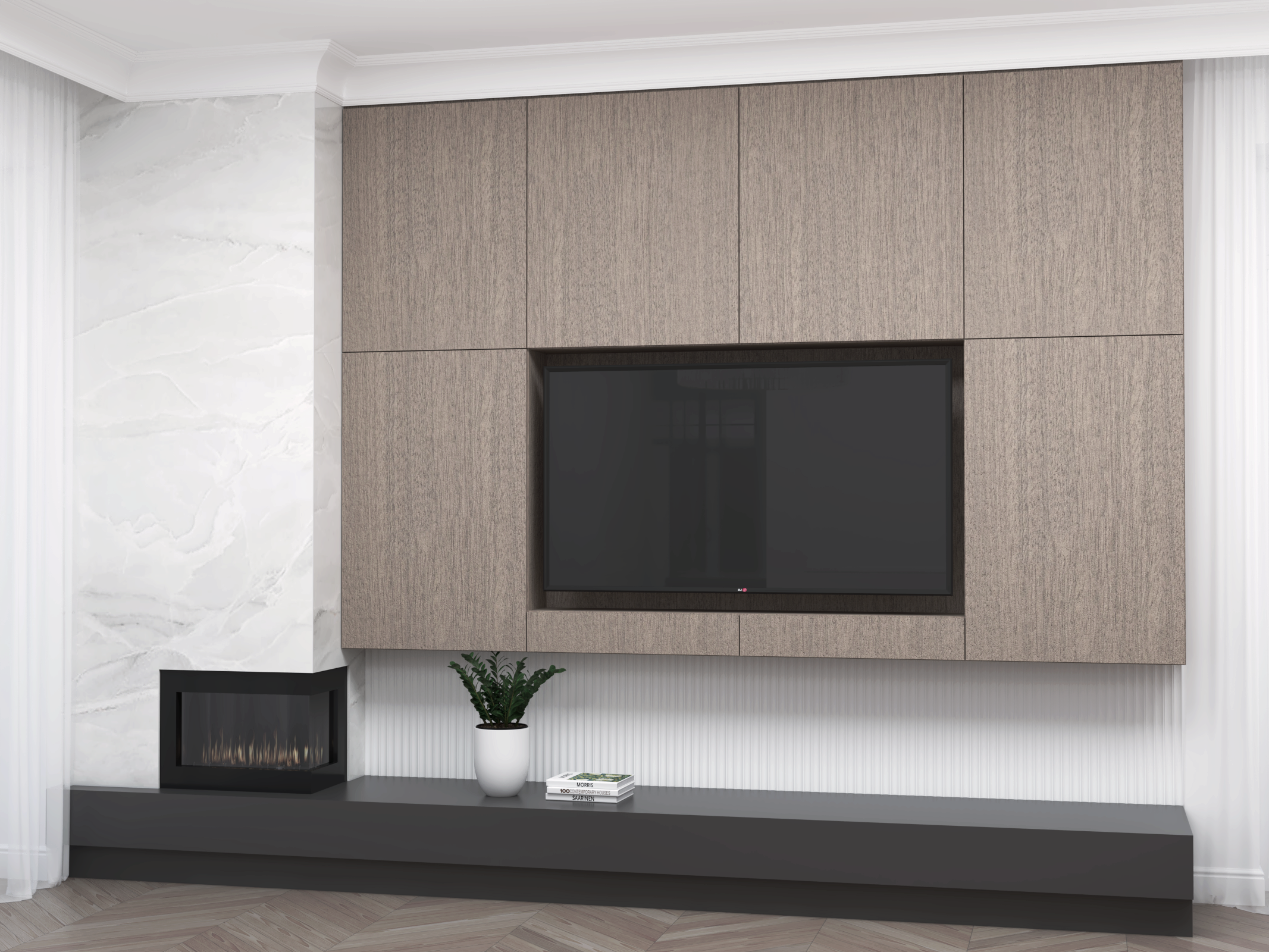 Zakres prac: Projekt wnętrz, produkcja mebli, montaż